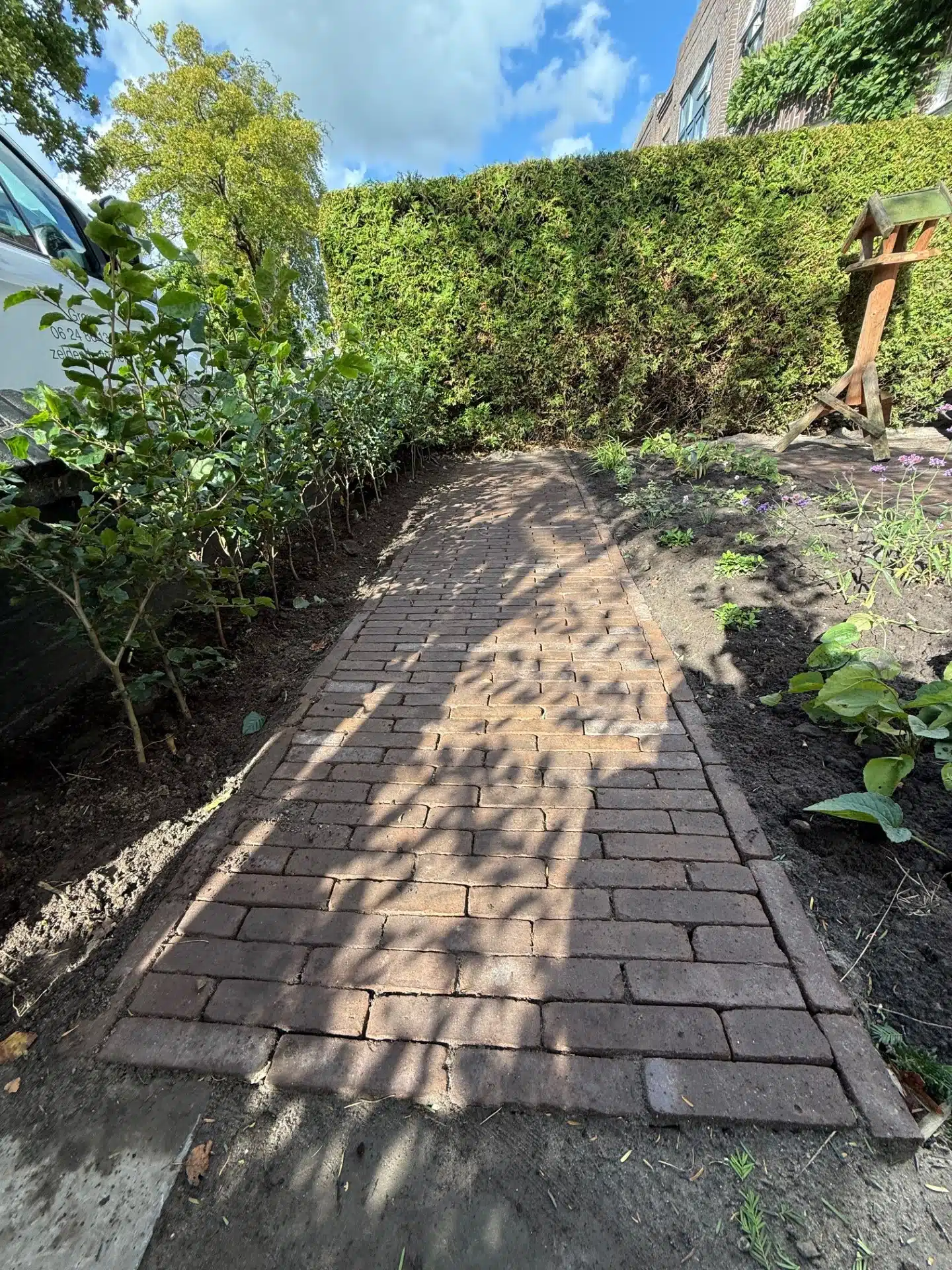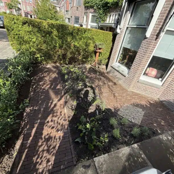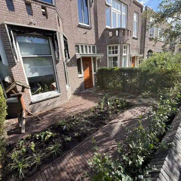 Deze voortuin in Leeuwarden laat zien hoe klassiek en eigentijds hand in hand kunnen gaan. Door te kiezen voor hergebruikte materialen en een tijdloos ontwerp krijgt de tuin niet alleen een duurzaam karakter, maar ook een echte jaren ’30 uitstraling die past bij de stijl van de woning en de omgeving.