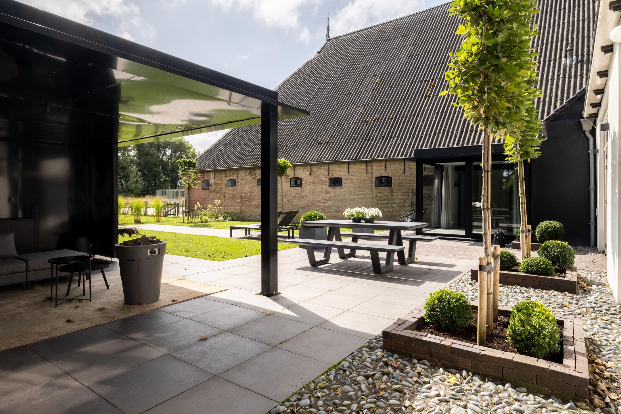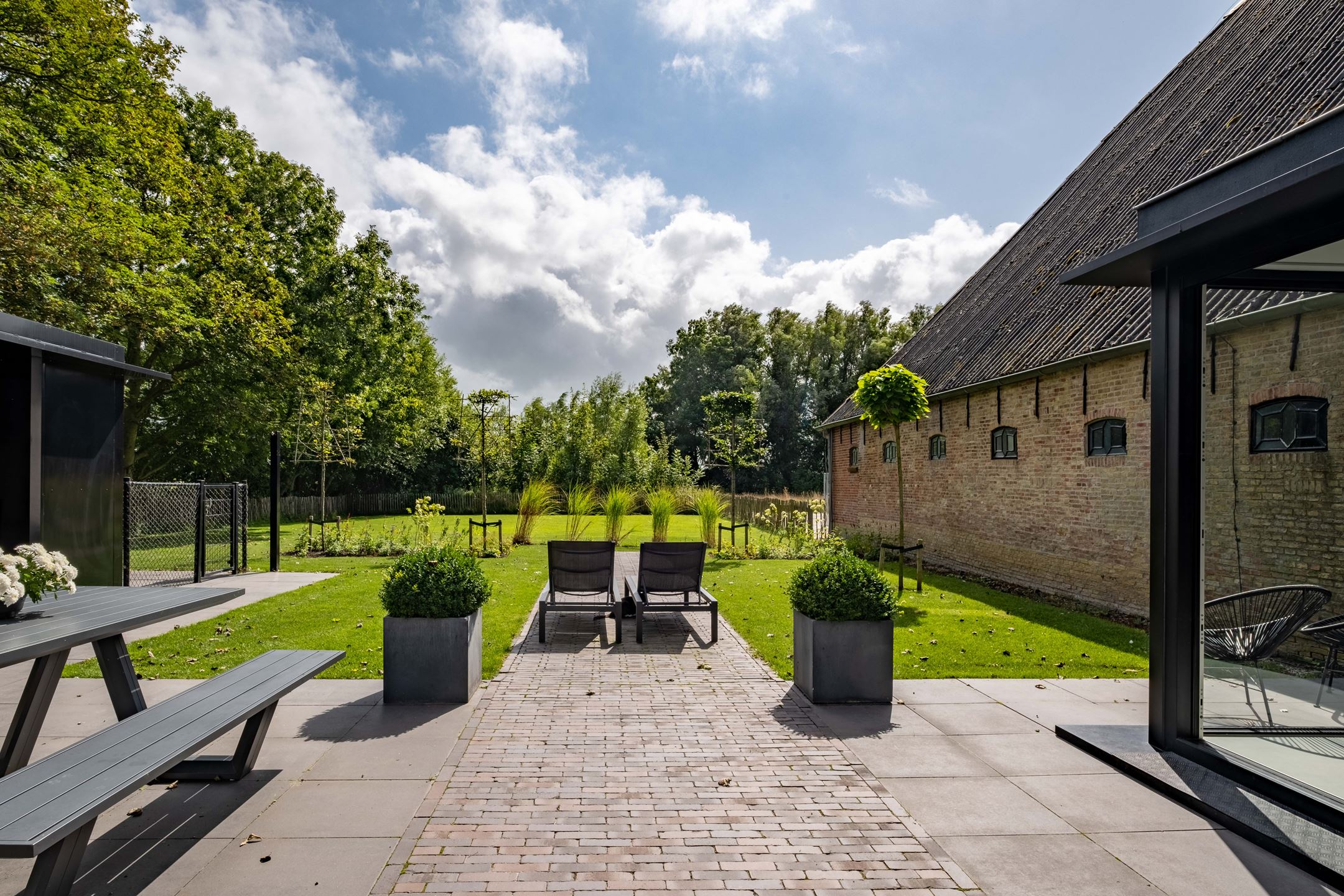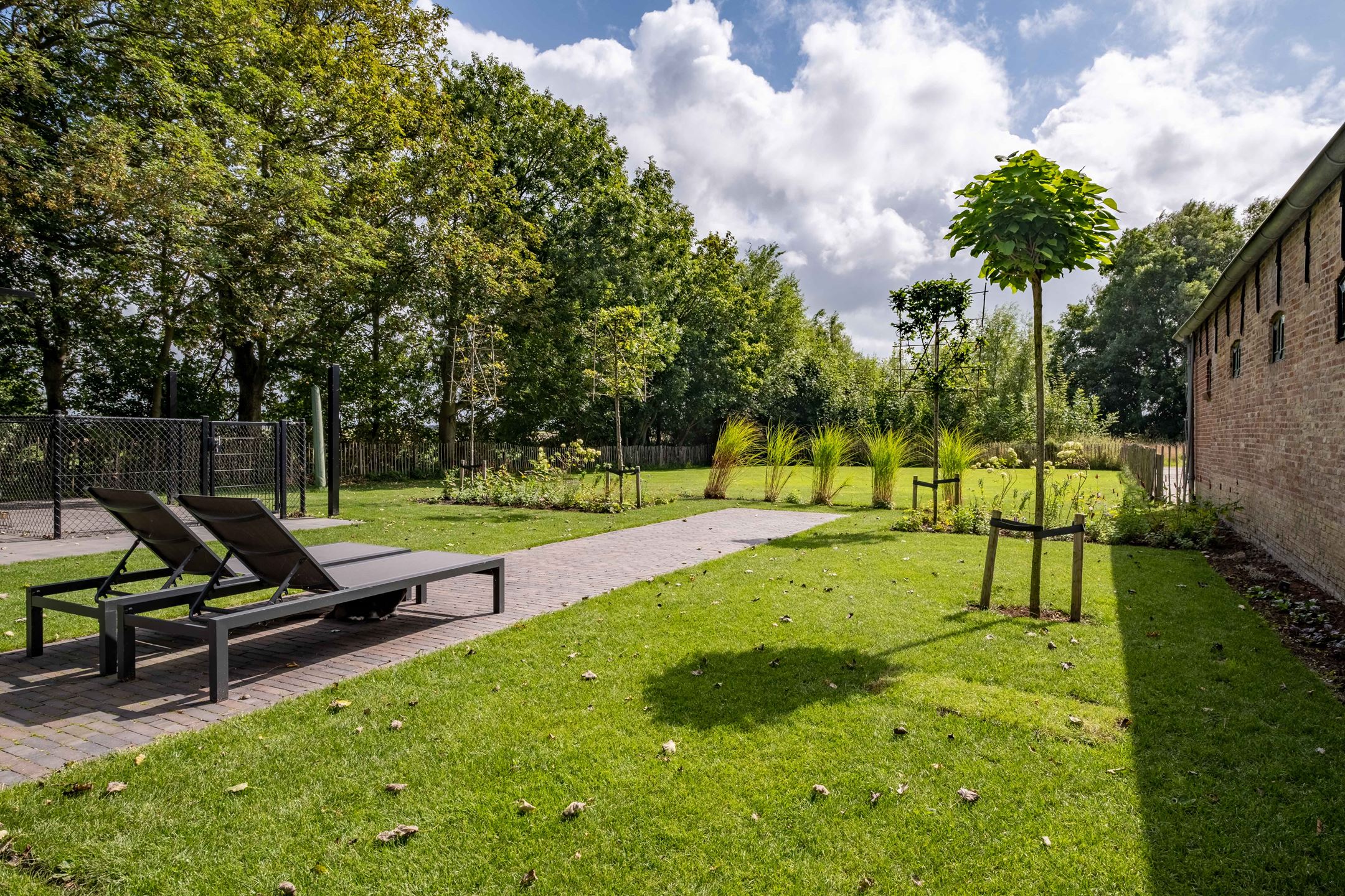 Voor deze mooie boerderij is een nieuw gazon met pebbles bestrating aangelegd. De pebbles bestrating is in Italiaanse stijl.